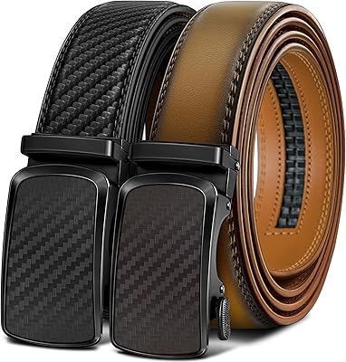 BULLIANT Mens Ratchet Belt 2 Pack-Click Leather Belt Adjustable for Men Gift 1 38-Cut for Perfect Fit